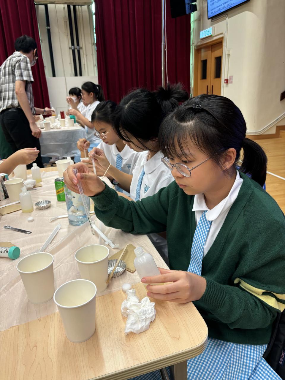 是次科學科及科技與生活科舉辦的聯課活動延伸課堂是由公開大學STREAM教育中心派其教學團隊到校任教,旨在讓中一學生學習料理中食品科學原理及體驗如何運用晶球技術 (Spherification)製作在分子料理。同學們都積極參與,反應熱烈,效果理想。