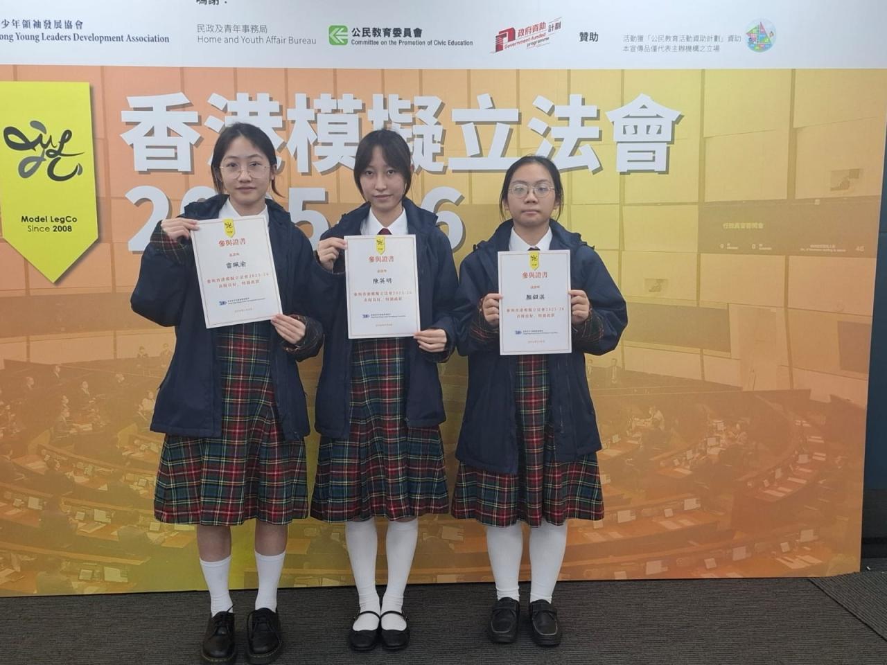 歷史科致力推動國民及公民教育,讓學生認識香港的立法機關和相關歷史。科組派出(五孝)陳英明、顏鋇淇和(四孝)雷珮渝同學參與由香港青少年領袖發展協會主辦「香港模擬立法會2025-26」計劃 。三位同學通過面試,榮獲取錄,並完成一系列訓練活動,包括:專題講座、領袖訓練、參觀立法會、與立法會議員交流、模擬辯論,取得計劃證書。此外,(五孝)顏鋇淇出席國際青年法律交流聯會「青年法治建設高峰會2025-26」,認識《憲法》、《基本法》及一國兩制,增廣見聞,為校增光,值得表揚。