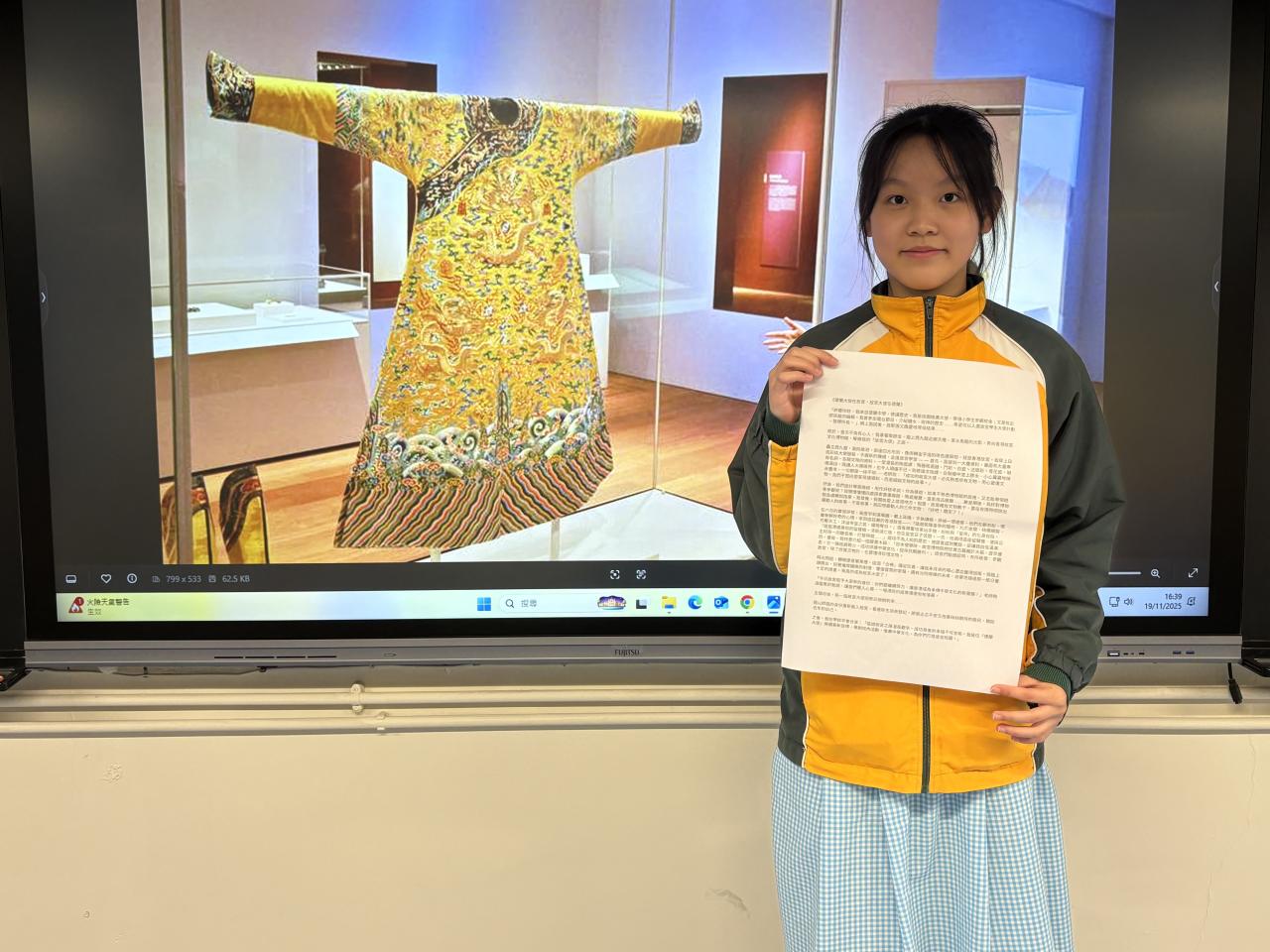 (六悌)蘇嘉晞完成「香港故宮學生文化大使計劃」(第二屆)後,一直致力在校園推廣故宮文化。她曾在歷史學習成果分享匯報和早會等向全校師生介紹故宮的歷史、文物知識和擔任故宮導賞員的經驗。她利用「故宮經驗」,參與由香港兒童文藝交流協會舉辦的第十二屆「文裕盃」全港校際徵文大賽,撰文〈德蘭大使在故宮,故宮大使在德蘭〉,回顧成為故宮大使的點滴,榮獲高中組季軍。