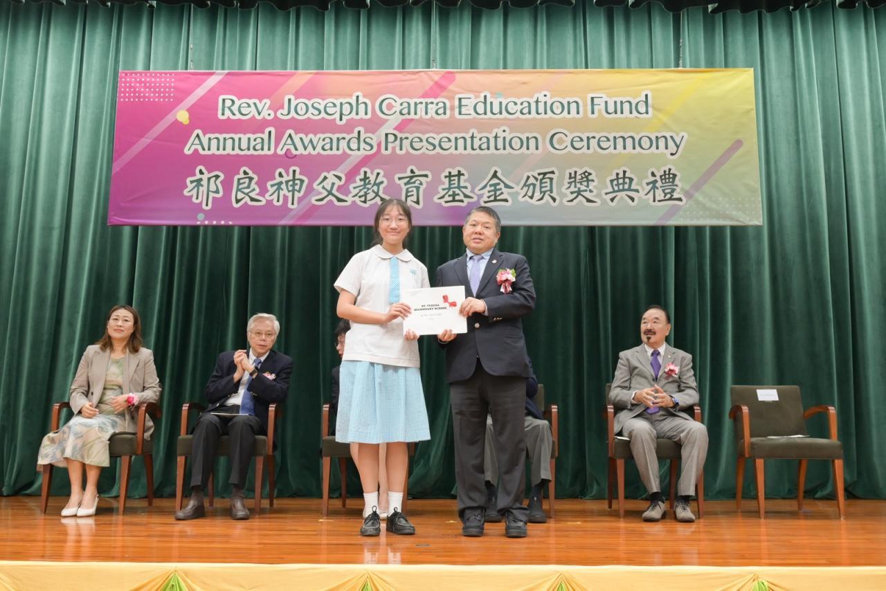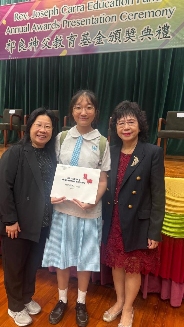 祁良神父教育奬學金(2025-26)頒奬典禮於11月15日舉行,獲奬者為6A江惠欣同學。