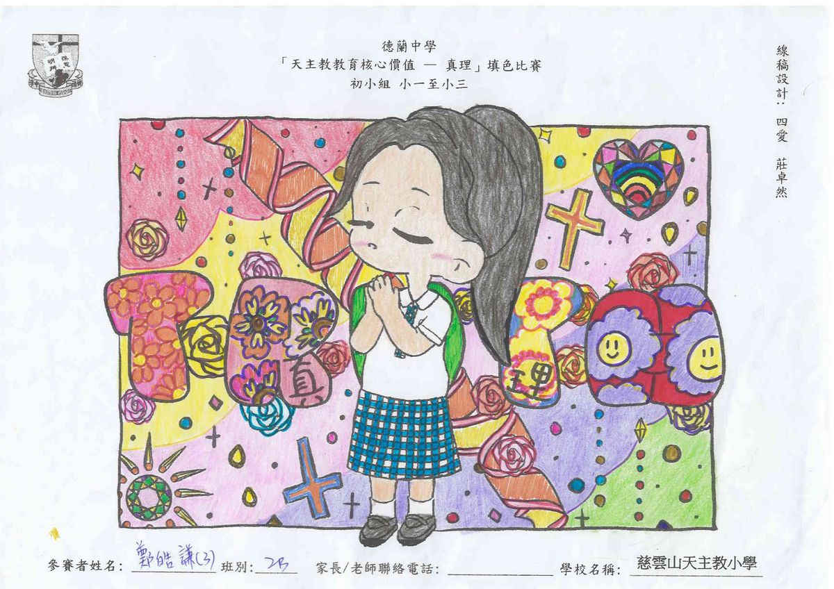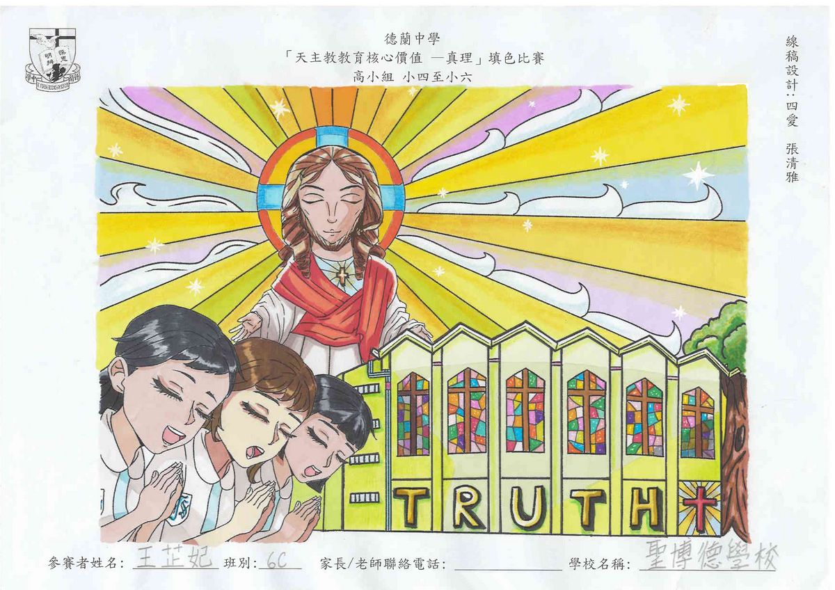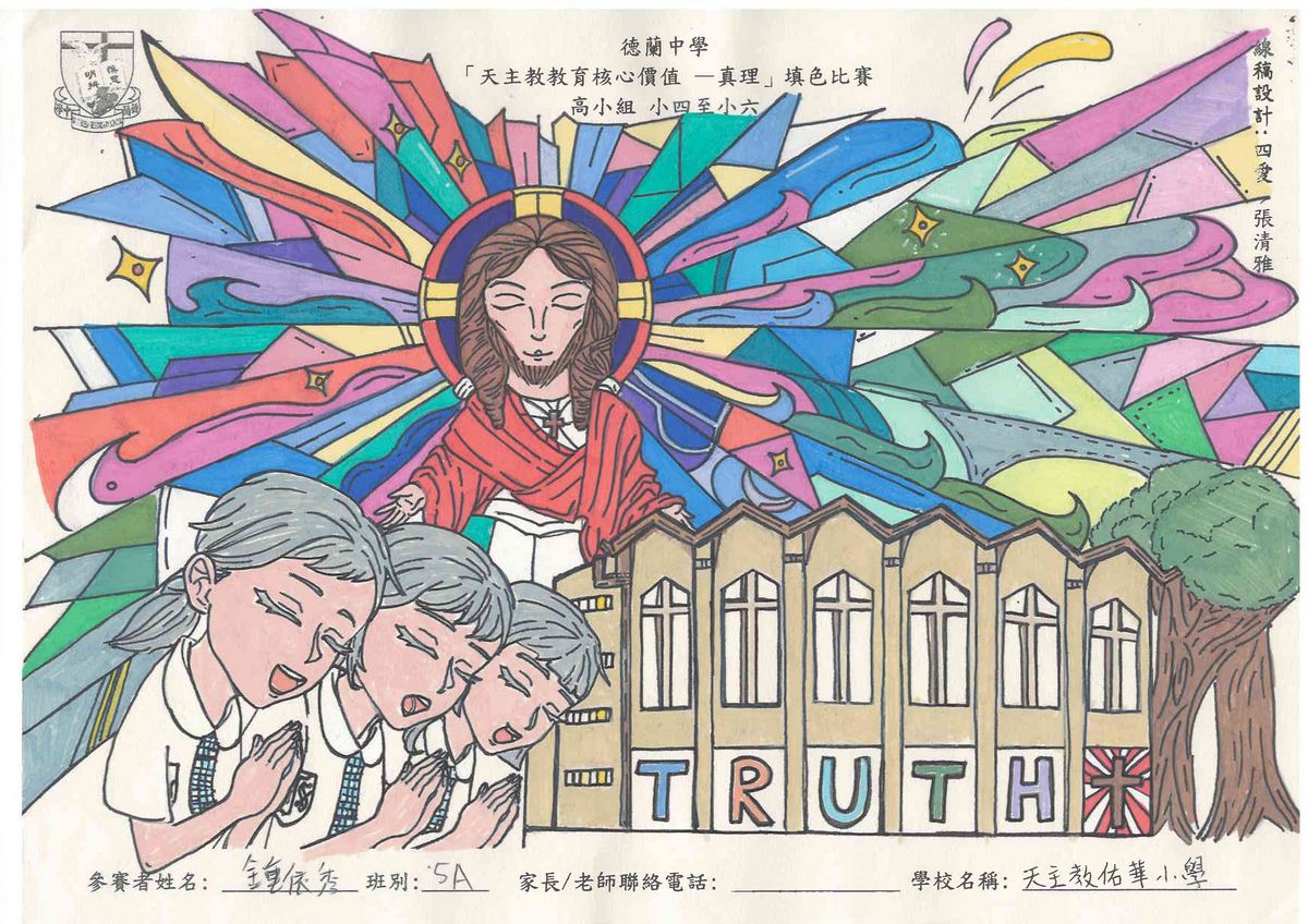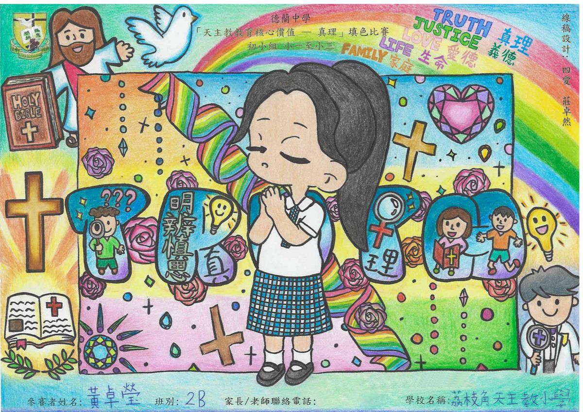 本校舉辦的「天主教教育核心價值 - 真理」填色比賽已圓滿結束!此次比賽旨在鼓勵學生展現他們的藝術創意和才能,並推廣本年度核心價值 - 真理這一重要價值觀。