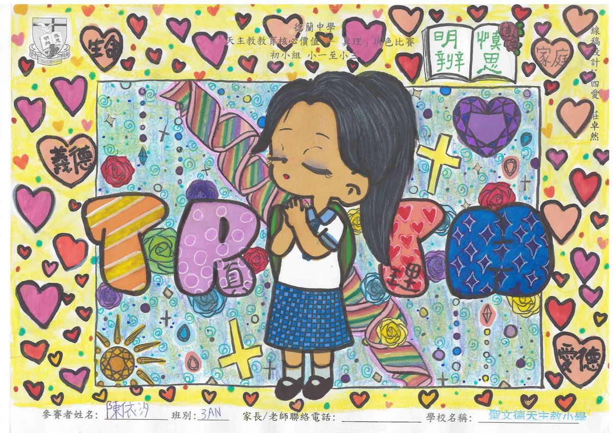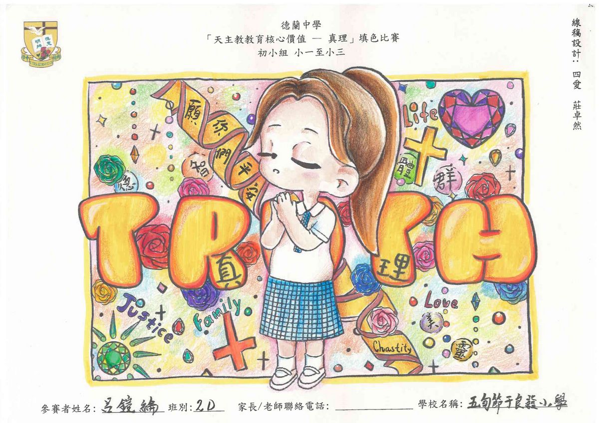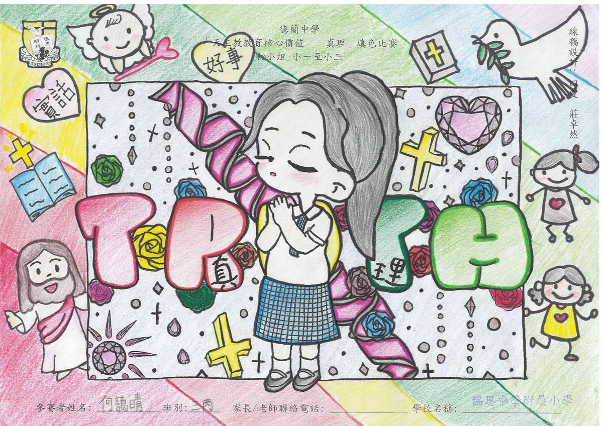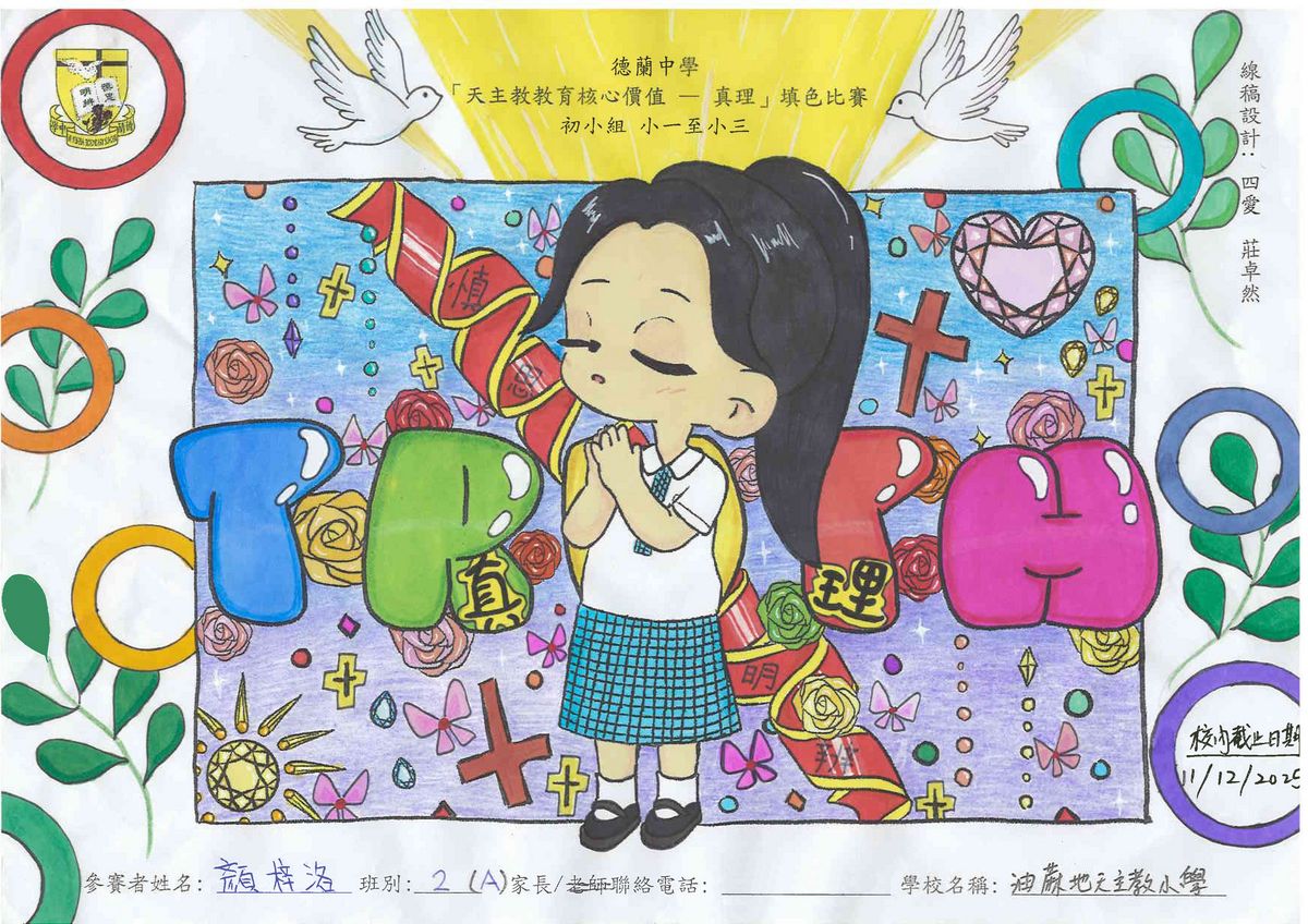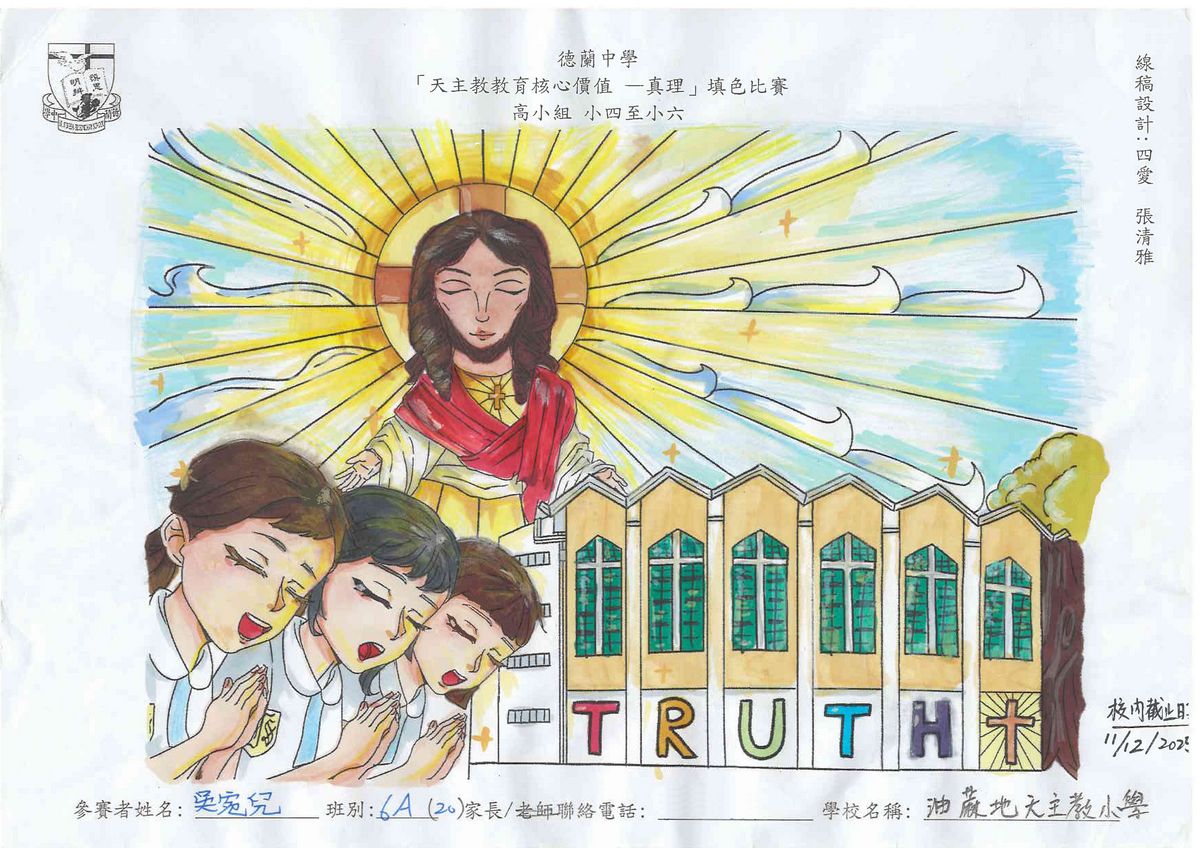 本校舉辦的「天主教教育核心價值 - 真理」填色比賽已圓滿結束!此次比賽旨在鼓勵學生展現他們的藝術創意和才能,並推廣本年度核心價值 - 真理這一重要價值觀。
