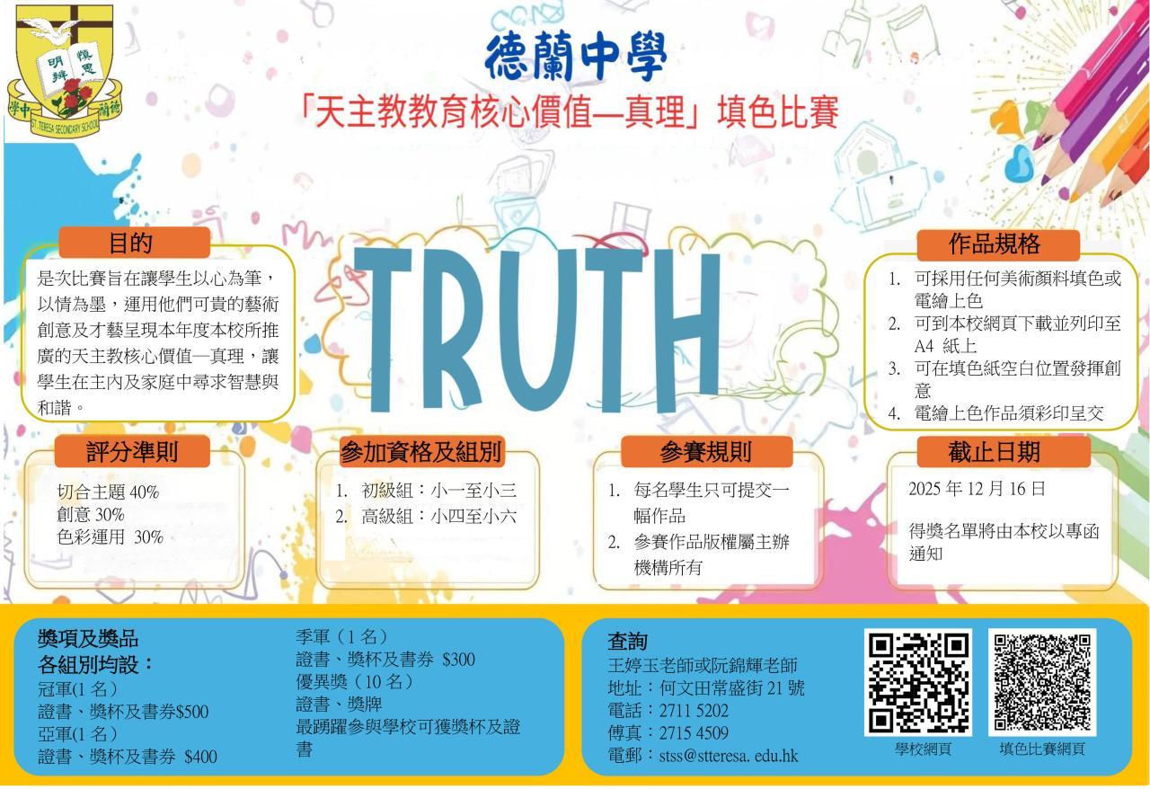 德蘭中學「天主教教育核心價值—真理」填色比賽