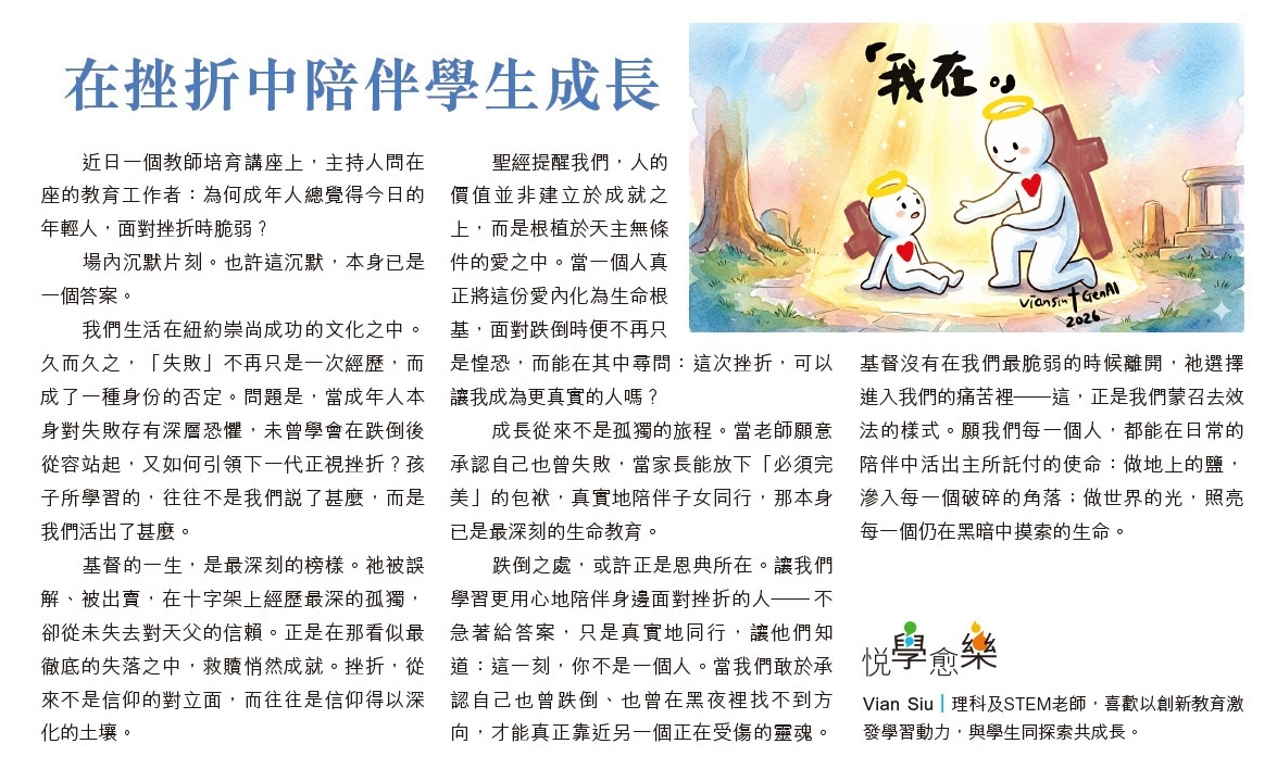 蕭煒炘老師在2026.4.12 公教報喜樂少年文章與創作《在挫折中陪伴學生成長》。