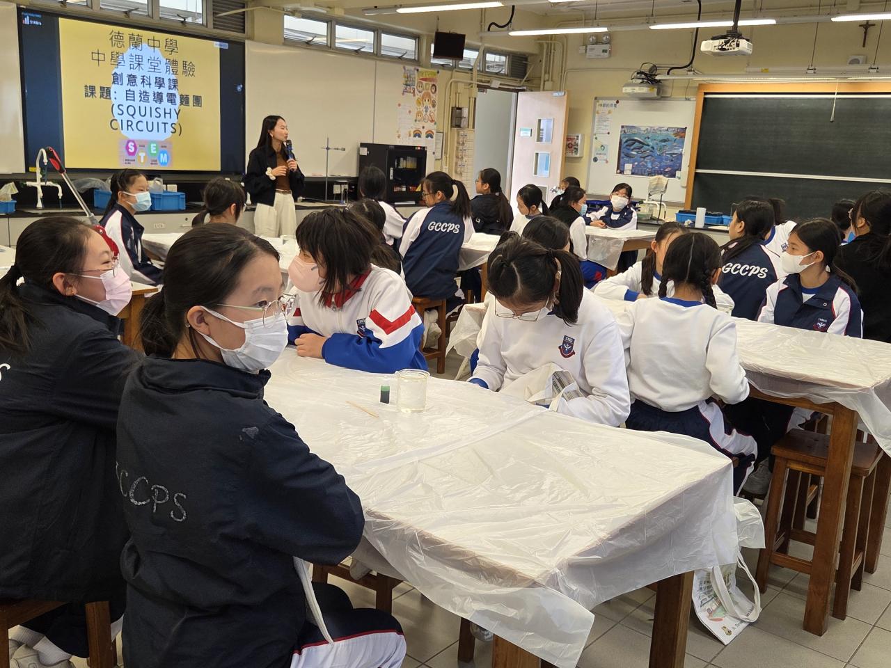 當天,本校老師帶領小學生遊覽校園,介紹各教學設施與學習環境。隨後,她們參加了兩個特別體驗課堂,分別為STEAM自造導電麵團及中文新詩創作。