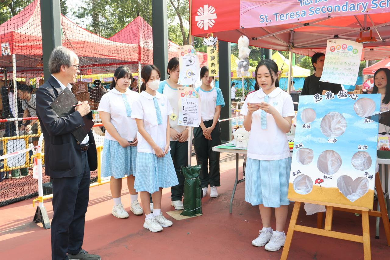 在11月9日,我校同學參與了由明愛賣物會,活動地點設於太子界限街花墟公園及第二街82-85號鋪。同學當天負責管理遊戲攤位及義賣攤位,為籌募善款以支援有需要的群體貢獻力量。活動現場氣氛熱烈,各類攤位吸引了眾多市民參與,充分展現了關愛精神與社區互助的美好氛圍。
