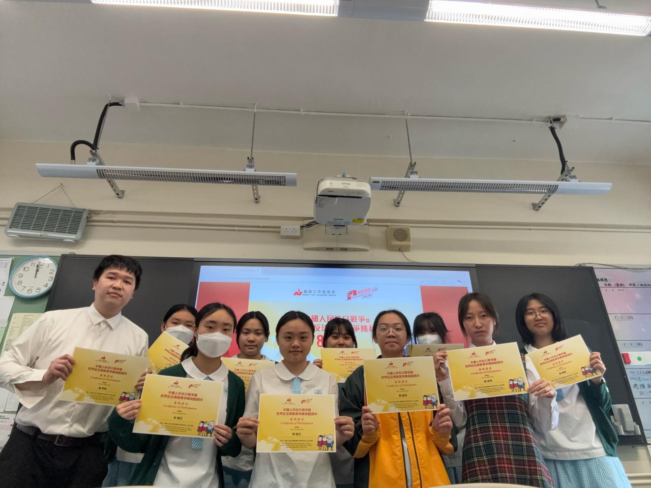 為紀念中國人民抗日戰爭暨世界反法西斯戰爭勝利80周年,歷史科致力推動抗戰歷史教育,培養學生的國家安全觀念。歷史科師生響應義務工作發展局主辦「中國人民抗日戰爭勝利80周年紀念」網上問答活動,他們觀看歷史動畫,並正確回答所有問題,取得活動證書。
