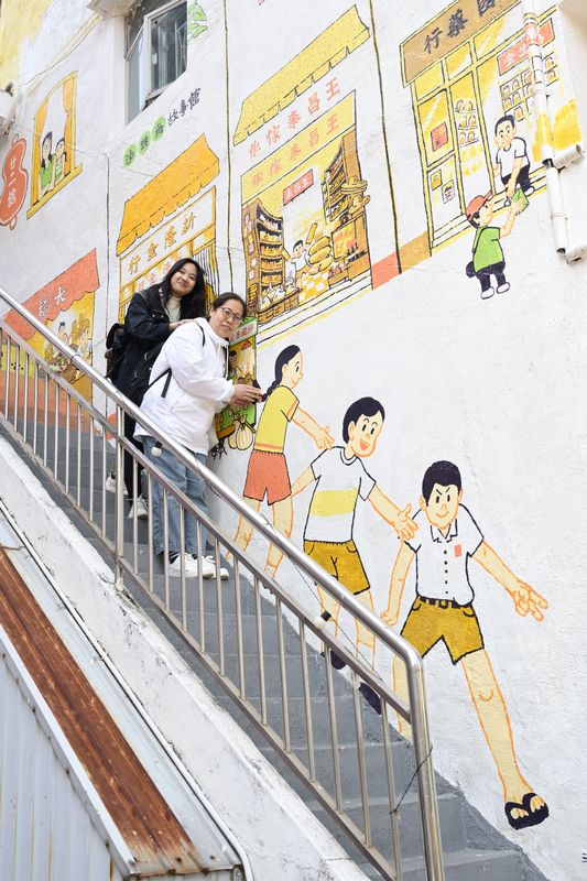 其中,中英街花園位於中英街檢查站前,設有許願瞭望台,讓遊客遠眺中英街的獨特風景。大家還可在欄杆上掛上許願牌,寄語心願。花園仿照香港舊式火車站設計,設有1:1火車頭模型、復古車站牆身及櫻花樹等植物,成為打卡的熱點,大家興致勃勃,紛紛拍照留念。