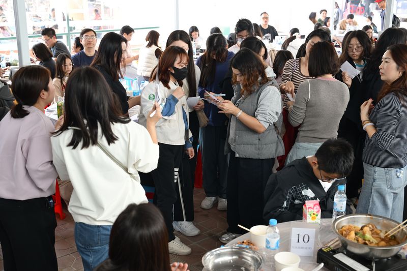 中午時分,大家來到沙頭角農莊,親手製作客家茶粿,並品嘗地道的客家盆菜宴。午膳期間,家教會委員還為大家準備了刺激的互動遊戲和抽獎活動,獎品豐富,大家都玩得非常投入,笑聲不斷,增添了不少樂趣。用餐後,我們前往沙頭角上禾坑客家村參觀法定古蹟鏡蓉書屋。該建築極具歷史與文化價值,由沙頭角李族於清朝興建,原為族內子弟就讀的私塾,後經擴建及重修,見證了客家社群對教育的重視。大家可以自由活動,欣賞書屋中寓意多「福」的蝠鼠圖案、壁畫及雕刻,進一步了解嶺南傳統建築的特色和美學。