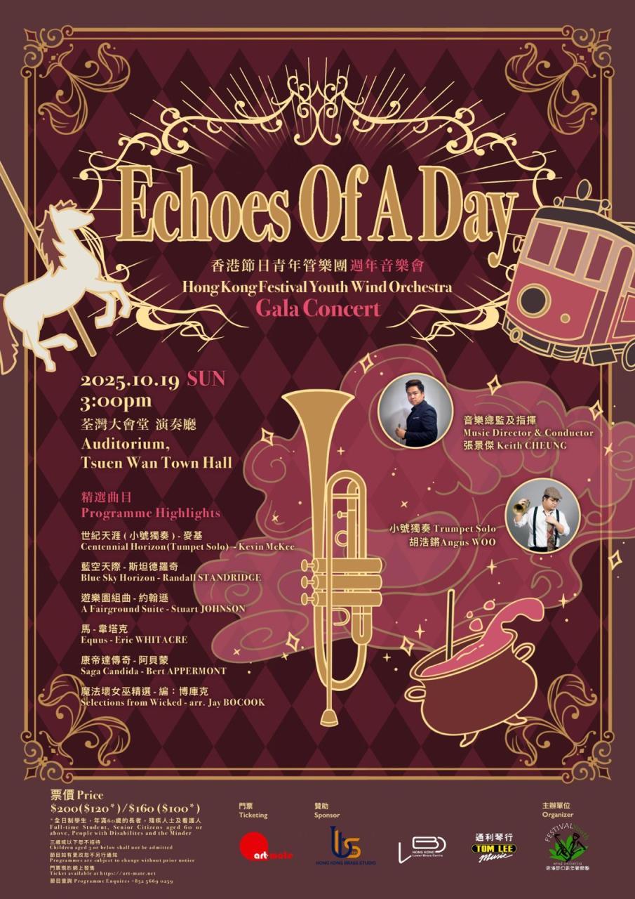 本校管樂團代表在10月19日參加了香港節日青年管樂團的周年音樂會,表演多首曲目,觀眾反應熱烈。