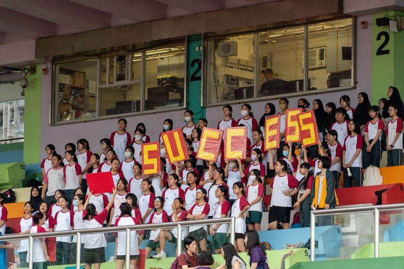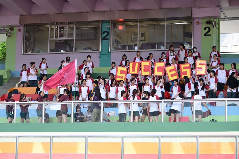 最後,畢業班同學穿上特別設計的班衣,以動作帶領全校師生唱 Action Song「Shine Jesus Shine」,陸運會在一片歡呼聲中圓滿結束。