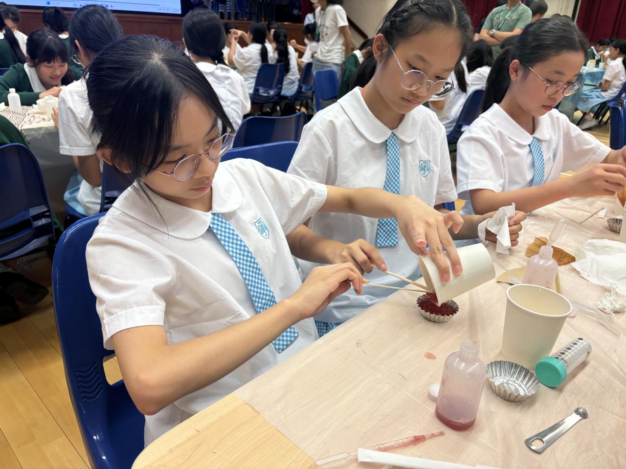 是次科學科及科技與生活科舉辦的聯課活動延伸課堂是由公開大學STREAM教育中心派其教學團隊到校任教,旨在讓中一學生學習料理中食品科學原理及體驗如何運用晶球技術 (Spherification)製作在分子料理。同學們都積極參與,反應熱烈,效果理想。