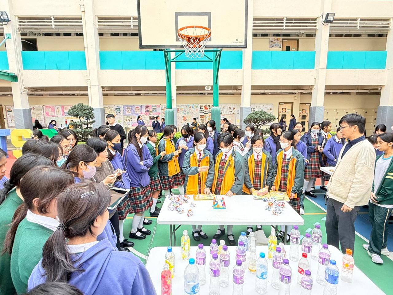 學校操場亦設賽馬會「節能減電互動攤位」,推廣「碳中和」理念,認識可持續發展,負起保護環境的責任。