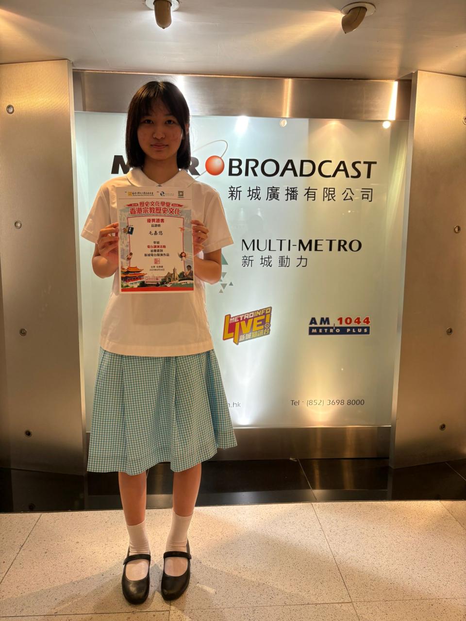 歷史科致力推動中華文化教育和香港歷史研究。科組早前推薦學生參與香港中華文化發展聯合會《歷史文化學堂(第十屆)——香港宗教歷史文化》電台講演比賽。(五孝)陳英明、顏鋇淇、(六悌)蘇嘉晞、(六忠)李翠芸、(三愛)戴佩茹同學製作「廟宇醮棚大冒險:元朗也有太平清醮!」的廣播劇,介紹廈村太平清醮的歷史,以及相關傳統習俗,奪得入圍獎。節目已於新城電台知訊台《世界隨意門》播出,《文路》雜誌第47期也有相關報導。此外,廣播劇之選段已收錄於文聯會《歷史文化學堂──香港宗教歷史文化 成品集》,供公眾和學界參考。