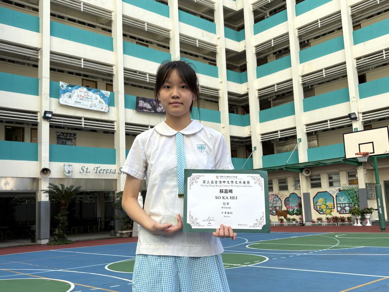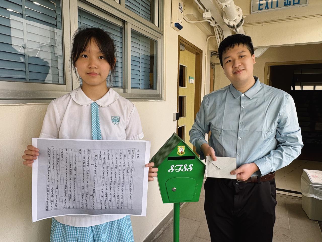 為推廣郵政歷史,歷史科舉薦(六悌)蘇嘉晞參與國際文化藝術交流協會舉辦「第三屆全港中文作文參展賽」。她以〈假如我是100年後的孫兒,打開祖先的時間囊〉為題撰文,論述世界郵政服務的歷史,並發揮創意,為未來郵政的人工智能化提出各項建議。文章令人耳目一新,獲評少年組別冠軍,值得慶賀。