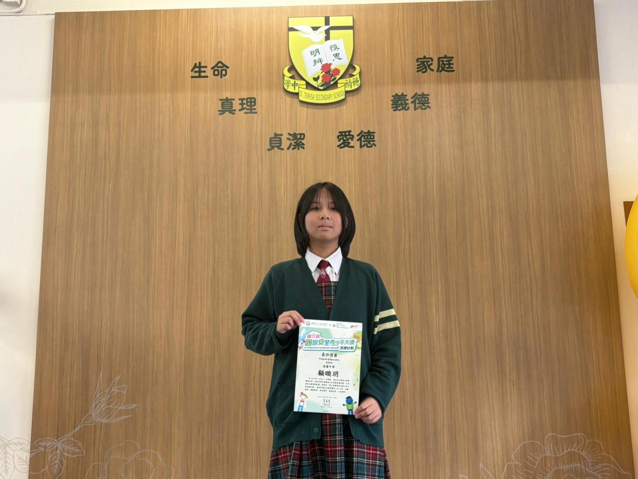 歷史科與國家安全教育工作小組緊密合作,致力推動國家安全教育。科組推薦(四孝)顧暶玥參與中業育才教育機構主辦,民政及青年事務局及公民教育委員會「公民教育活動資助計劃」贊助「第三屆國家安全青少年大使訓練計劃」。她經面試後入選,接受數月訓練,參與各項國家安全教育活動,包括:香港.青年發展高峰論壇,與其他青年交流,並從中深化對《憲法》、《基本法》、一國兩制,以及相關歷史發展的認識。她完成計劃,表現優秀,獲頒嘉許證書。
