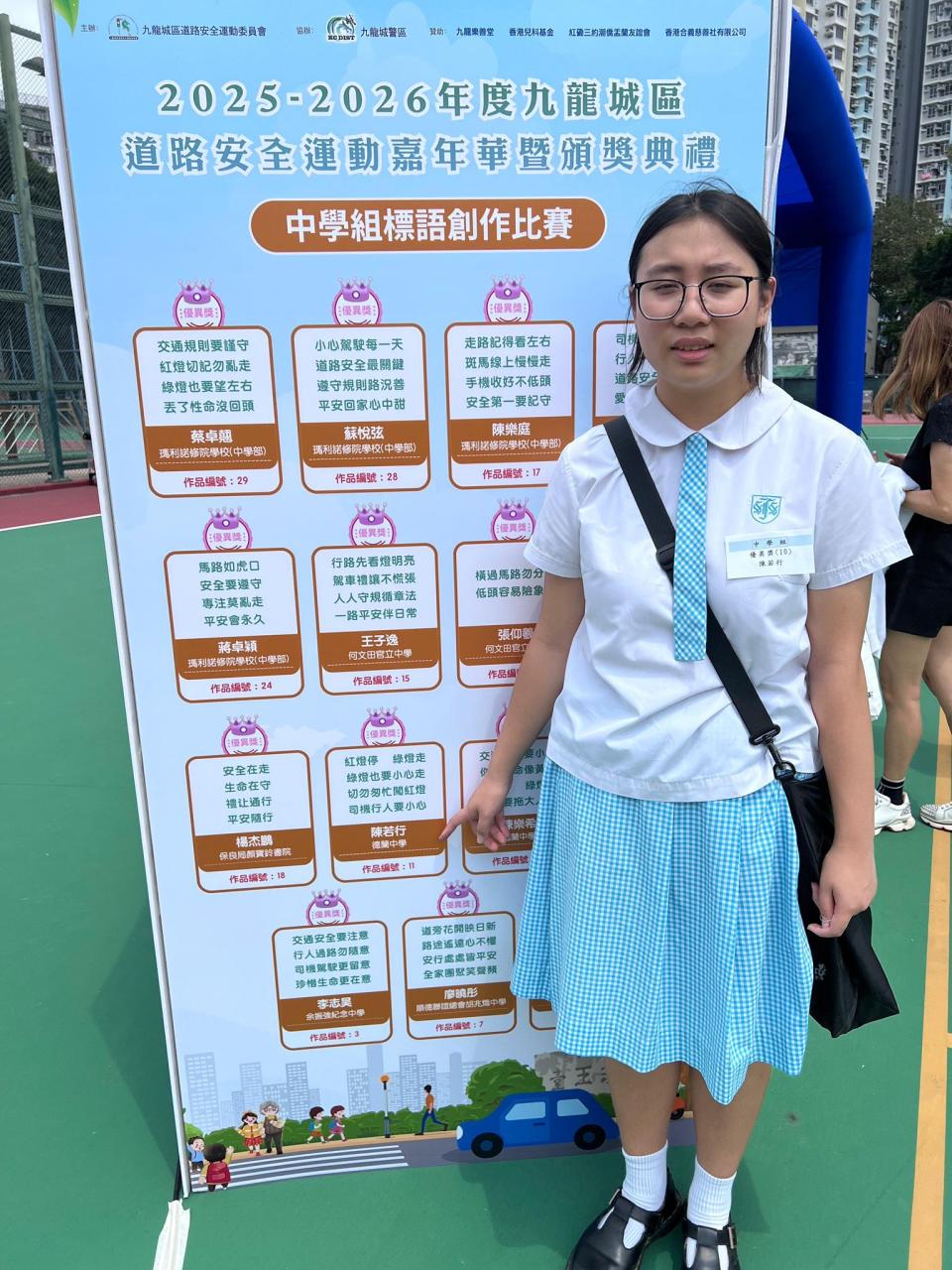 本校學生陳若行(3A)及陳樂希(3C)參加由九龍城區道路安全運動委員會主辦的2025至2026年度九龍城區道路安全運動「潛能創意盡表現——中學組標語創作比賽」,表現優良,獲得優異獎。