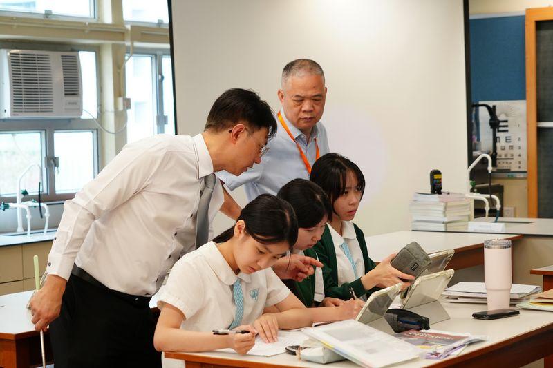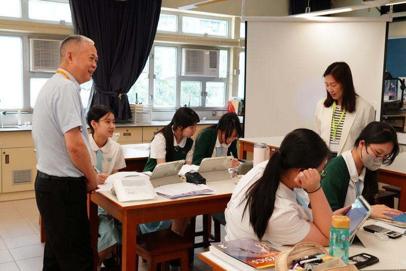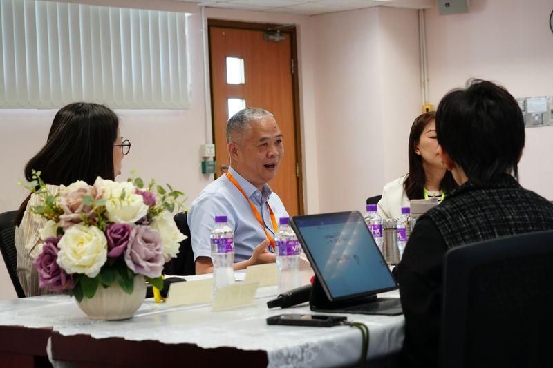 本校十分榮幸,得到「領航教師及校長培訓計劃」中的領航導師:佛山市順德區京師勵耘實驗學校彭志洪書記及華南師範大學張燕玲博士到訪本校,並與校長、學校管理層及第二期「領航教師及校長培訓計劃」學員物理科主任蔡煒傑老師進行專業交流。藉著這次交流活動,領航導師可以深入了解到學員的工作環境、日常工作情況及更全面地掌握學員的專業技能,從而提供更適切的指導和建議,以協助推動個人專業發展項目在學校落實。